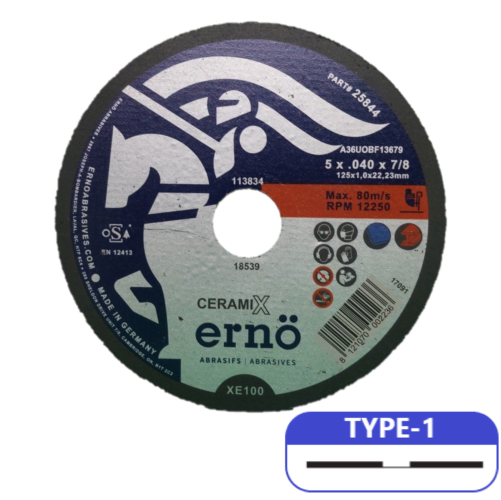 The 5″ × .040″ × 7/8″ CERAMIX Cut-Off Wheel is a high-performance ceramic abrasive wheel engineered for fast, cool cutting and extended service life. Designed for use on right-angle grinders, this Type 1 flat cut-off wheel delivers exceptional cutting speed and control on stainless steel, carbon steel, and other hard metals.
